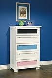 Dimension: 32"L x 15 3/4"W x 48"HFinish: WhiteMaterial: Hardwoods Solids, VeneersChest with Interchangeable Panels in White FinishFeatures five storage drawers with interchangeable panels.Drawers feature wooden knobs and knob hardware.Item comes with four color panels that are interchangeable: pink, blue, black or simple white.Item is sure to fit perfectly in any room.Matching bed, nightstand, dresser and mirror are available separately..../ Chest with Interchangeable Panels in White Finish / dresser and chests